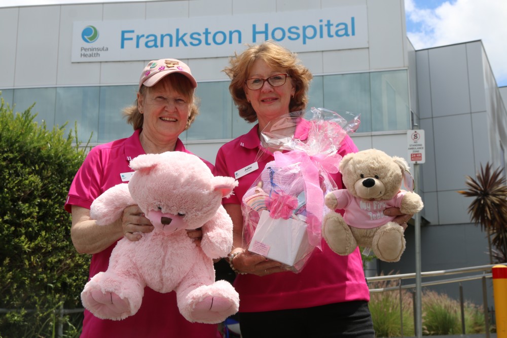 Pink Ladies Janine and Julie outside Frankston Hospital.